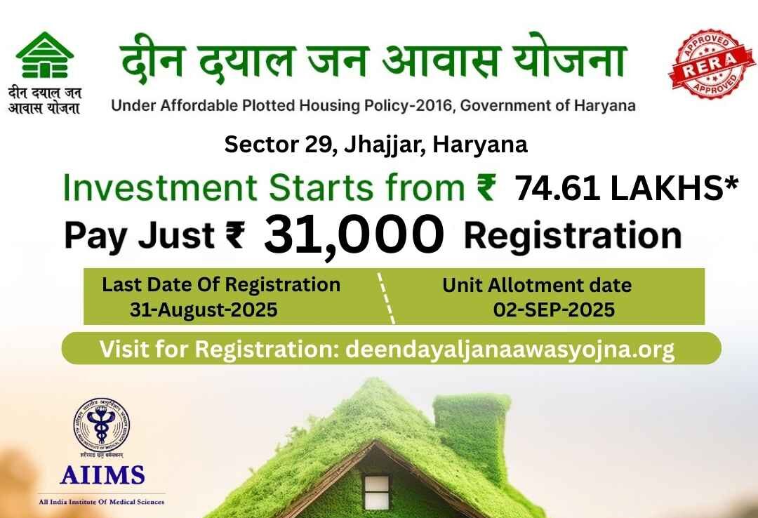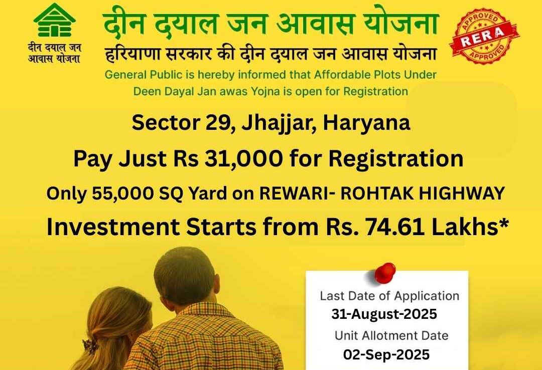 Registration is now open for premium DDJAY plots at DAA Home Avenue. Starting at ₹74.61 Lakh*, with just ₹31,000 refundable registration. Limited-time opportunity to book your dream plot.